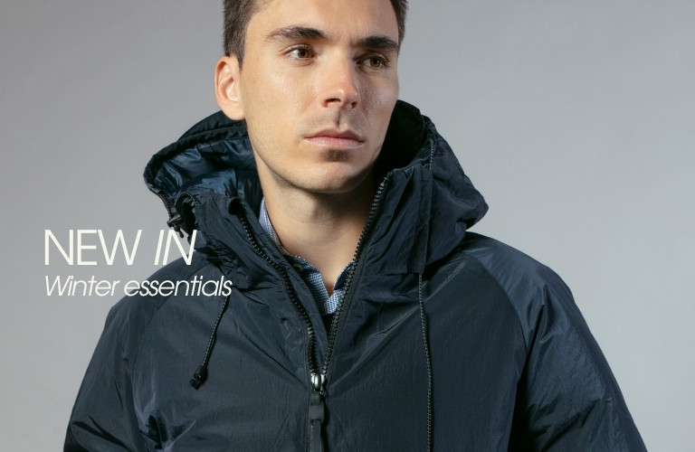 2135HAAN00 // M48485Chaqueta negra acolchada con capucha oculta en el cuello, cierre de cremallera, puño de las mangas ajustable y cuatro bolsillos frontales. 2135HAAN00