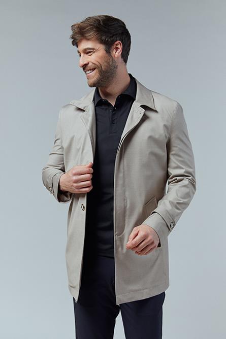 Gabardina de corte regular con interior repelente al agua disponible en color beige y azul marino. La versatilidad de esta prenda permite conseguir tanto looks formales como más sport.