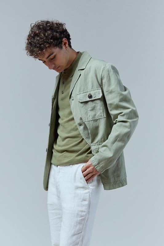 • CHAQUETA ALGODÓN LINO VERDE BOLSILLOS