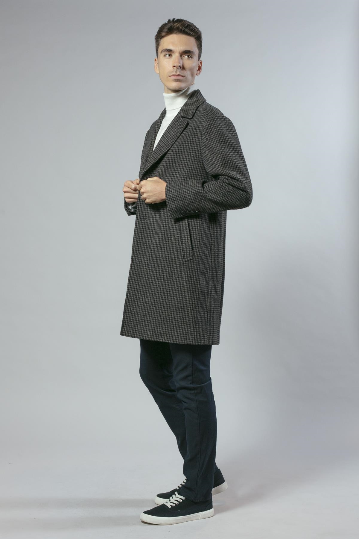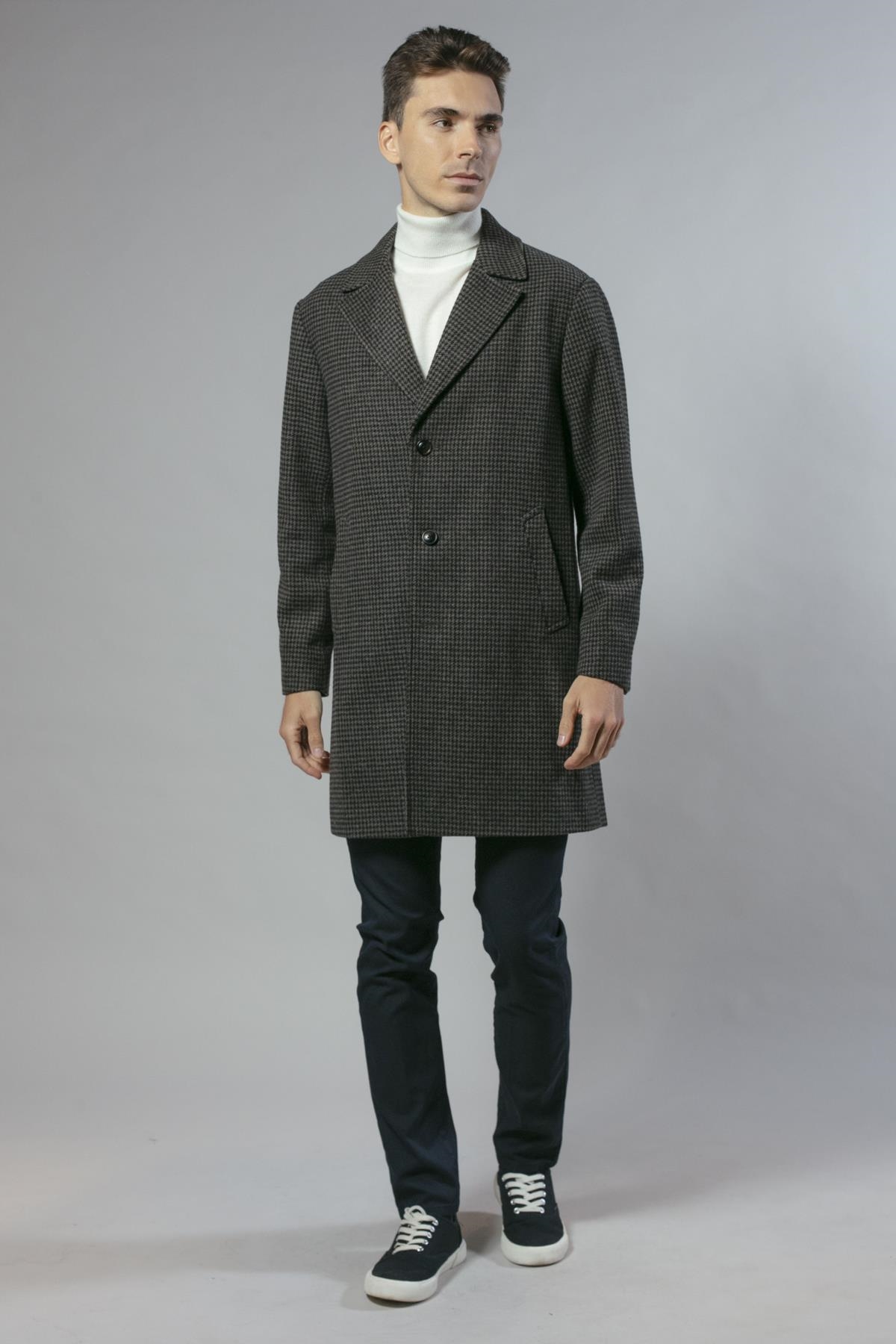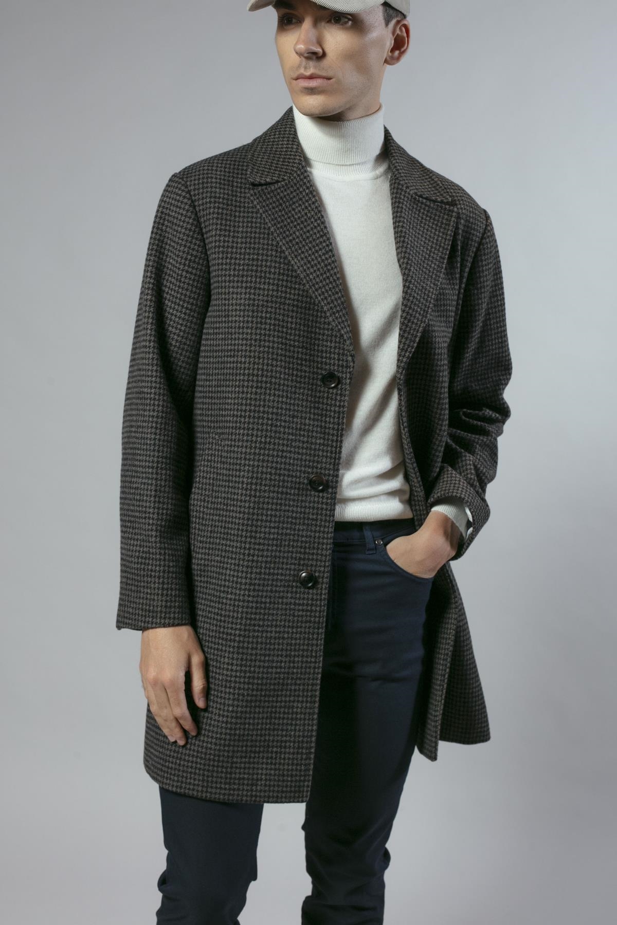 Abrigo marrón en pata de gallo, de lana y corte regular.