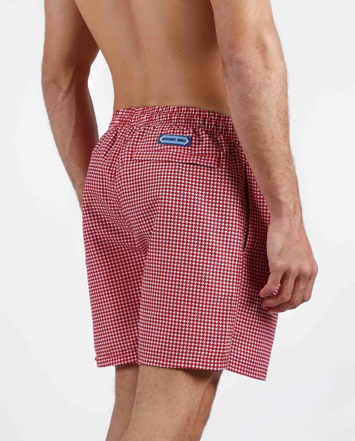 Bañador de hombre con un estampado actual, personalizado de la marca Antonio Miro, disponible en dos combinaciones de color: azul y rojo. Cuenta con cintura elástica con cordón ajustable, bolsillos laterales, bolsillo trasero con cremallera y forro interior. Perfecto para un día de sol y buen tiempo. También adecuado para combinar con cualquier camiseta de la marca.
