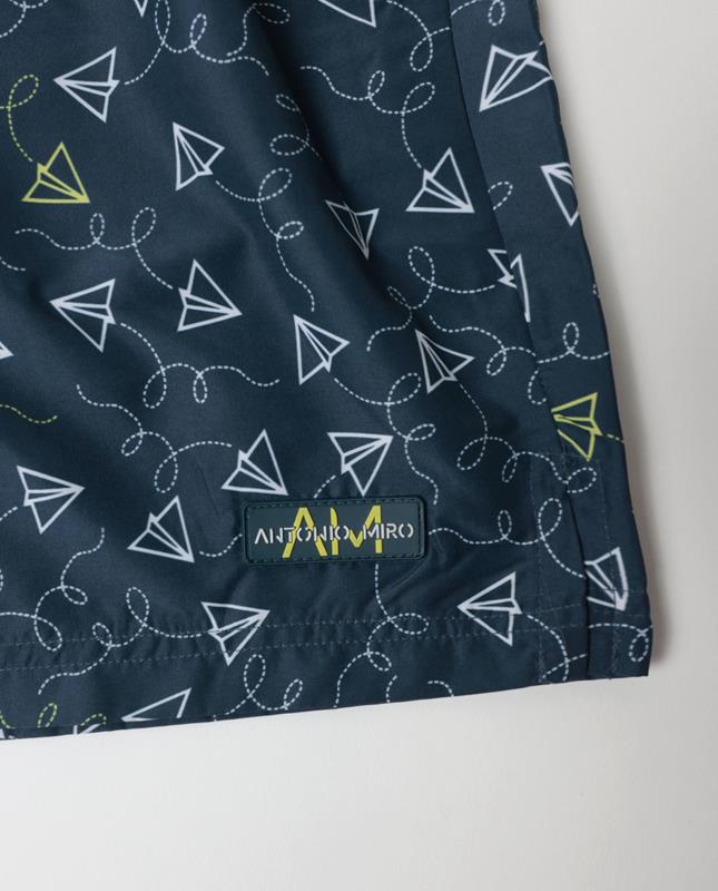 Bañador de hombre, de color azul marino, con un estampado a la última, personalizado de la marca Antonio Miro. Cuenta con cintura elástica y cordón ajustable para un ajuste cómodo, bolsillos laterales, bolsillo trasero y forro interior. Perfecto para un día de sol y buen tiempo. También adecuado para combinar con cualquier camiseta de la marca.
