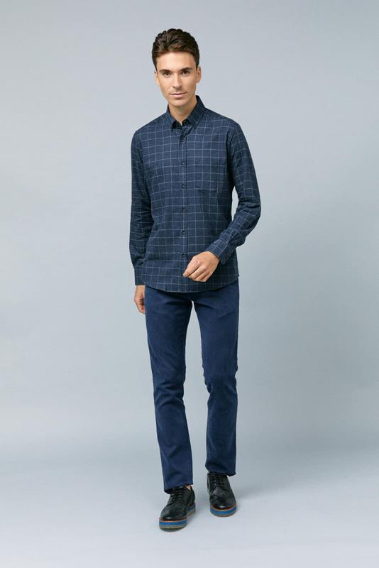 Camisa azul de cuadros grandes con bolsillo, de manga larga, en algodón y de corte regular.