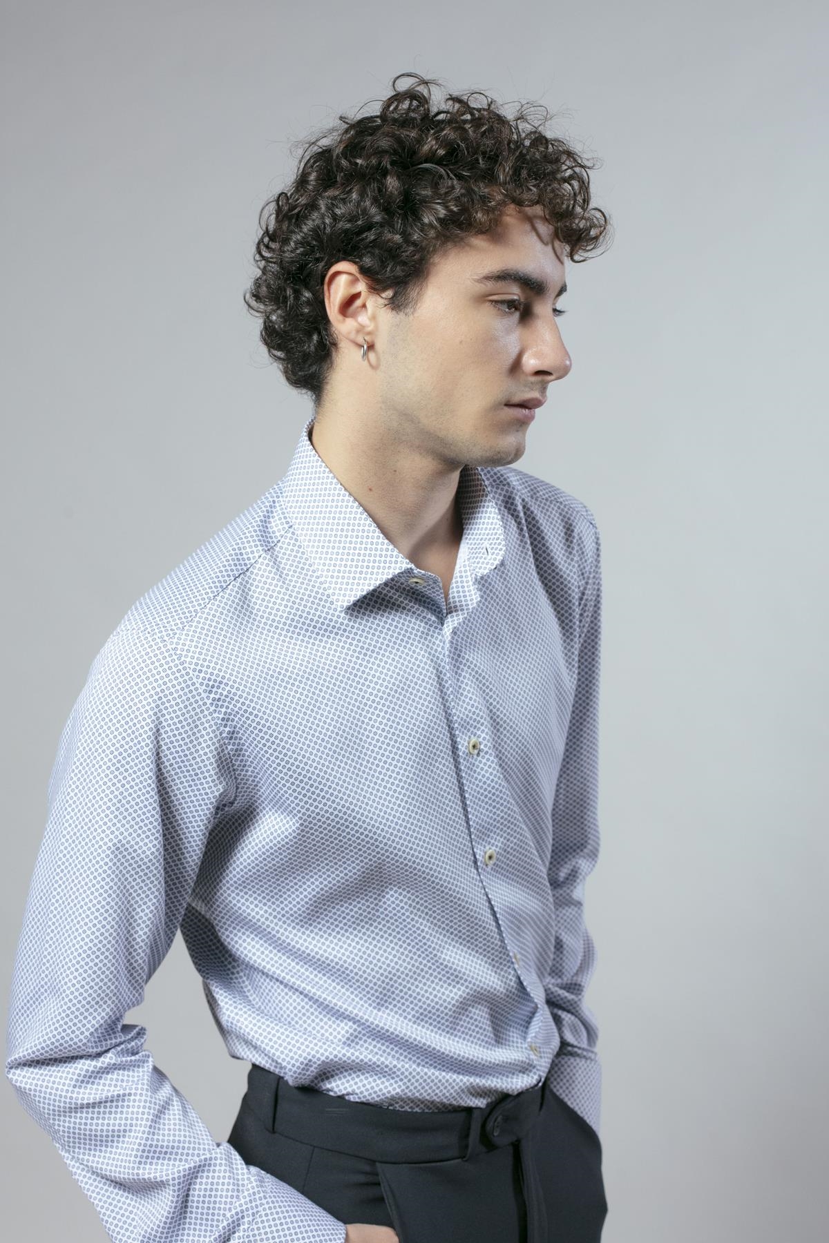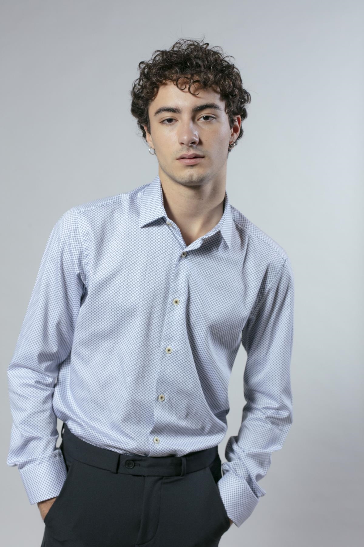 • CAMISA BLANCA MICRODIBUJO CRUZ AZUL