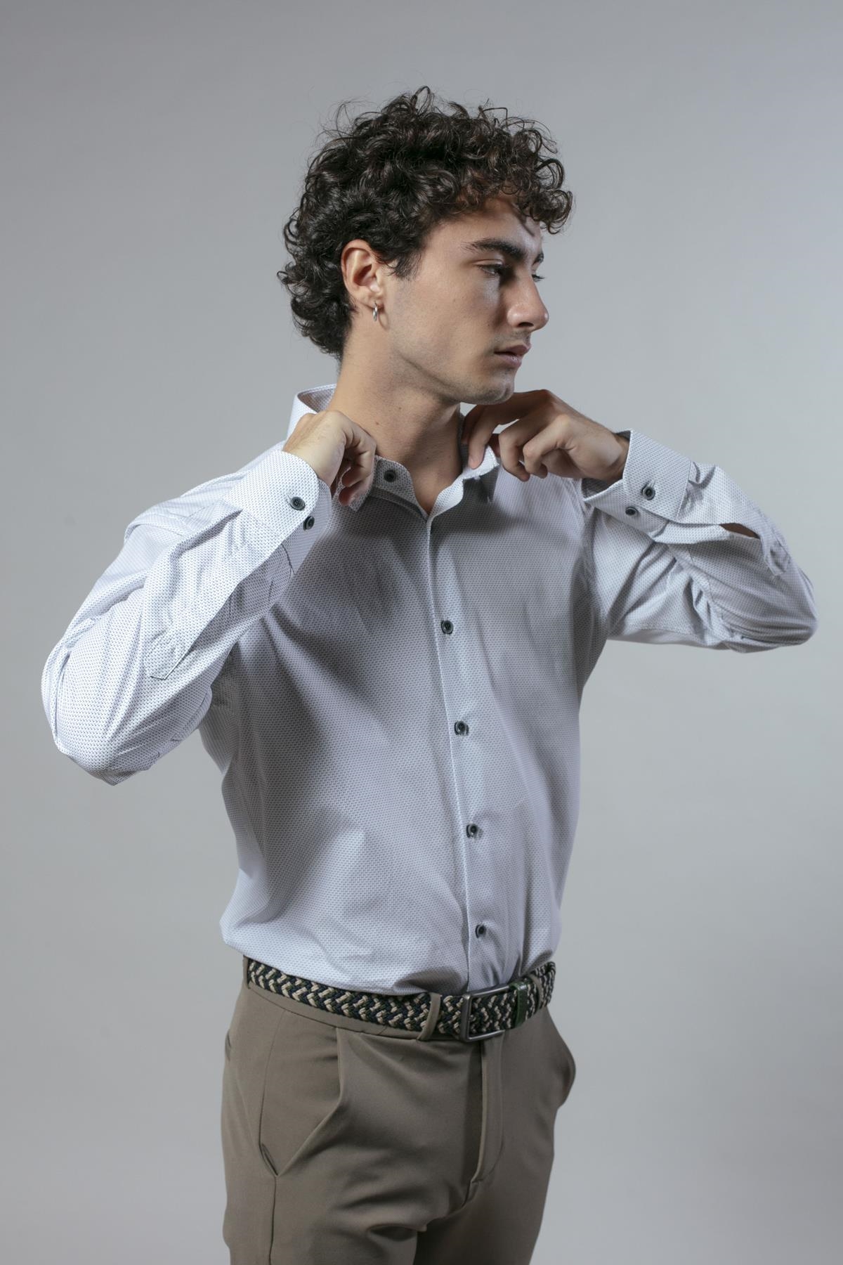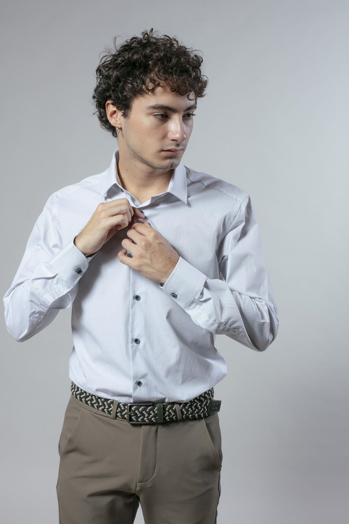 • CAMISA BLANCA MICRODIBUJO GRIS