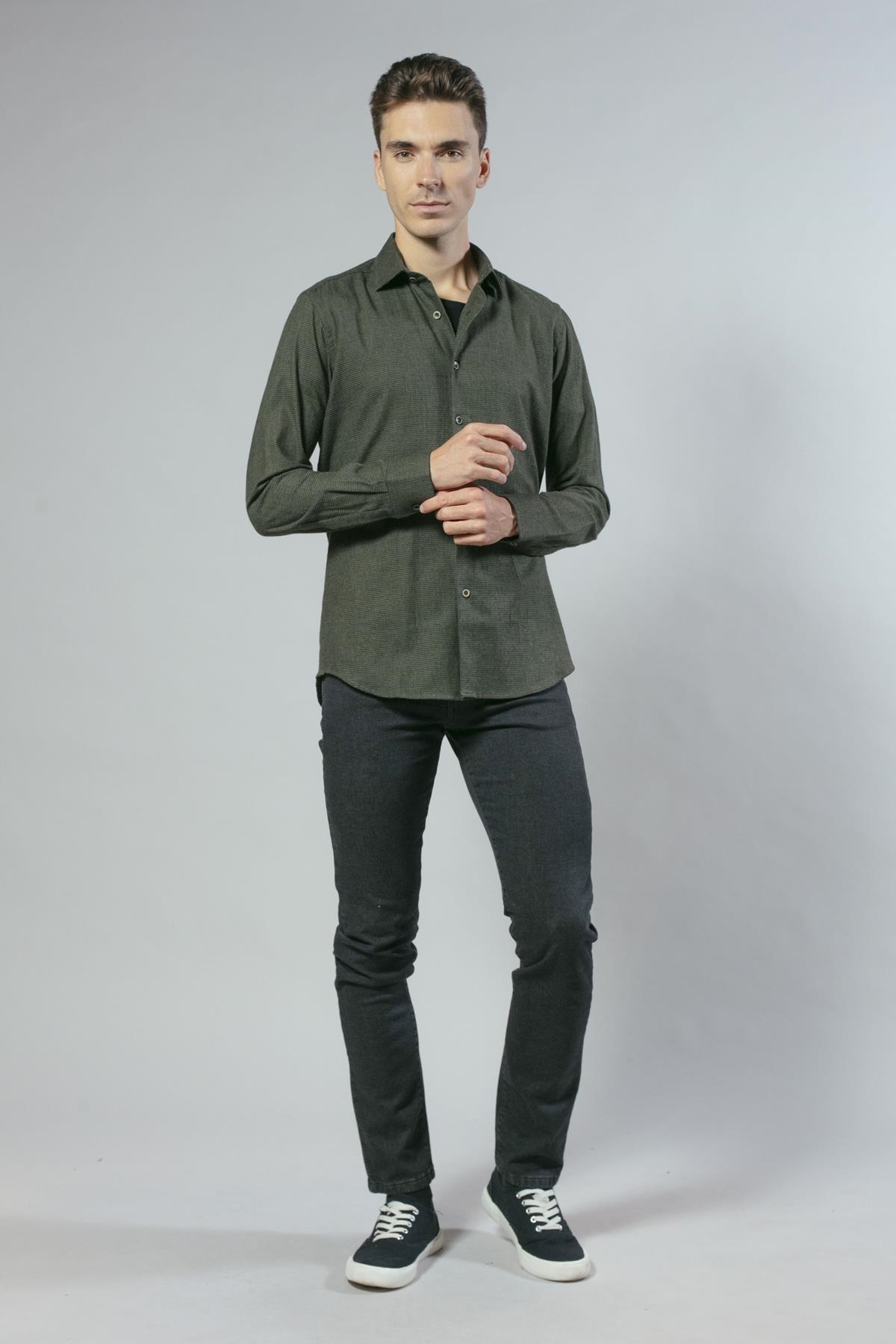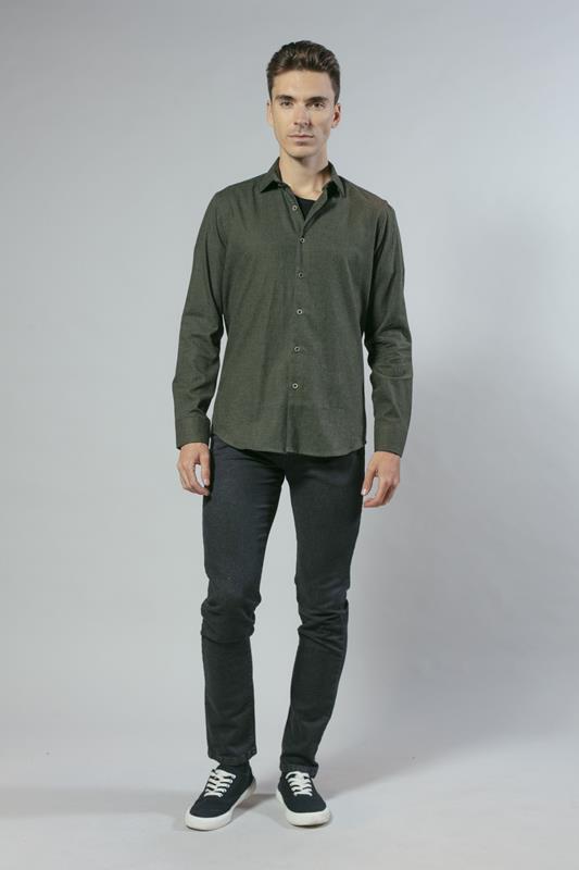 • CAMISA MICRODIBUJO FRANELA KAKI