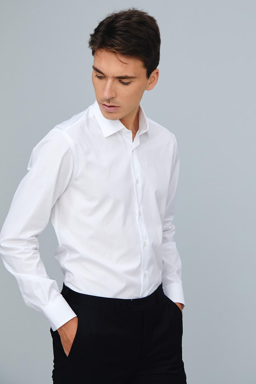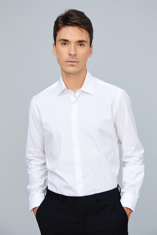 Camisa varios colores en algodón de corte entallado y manga larga.