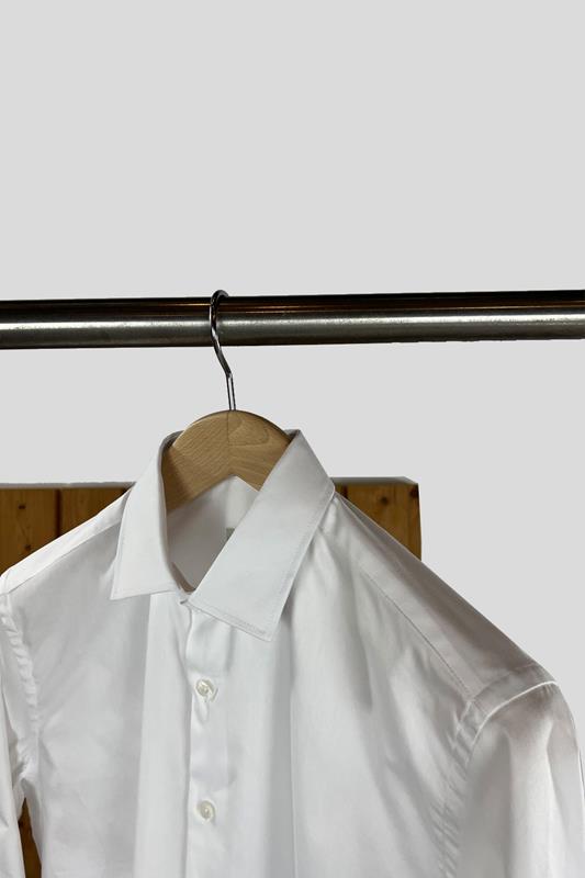 Camisa en algodón Oxford de corte entallado y manga larga disponible en blanco y azul celeste.