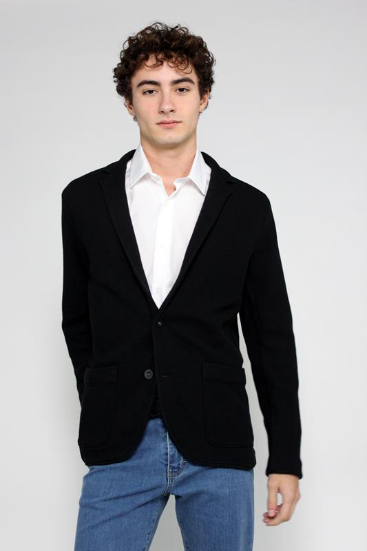 Americana en punto de algodón de corte entallado. Disponible en negro y topo.