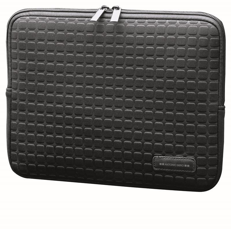Funda de neopreno de diseño elegante para tablets de hasta 10 pulgadas. Disponible en dos sobrios colores, con cierre de cremallera de doble tirador y parche frontal en polipiel con logotipo.