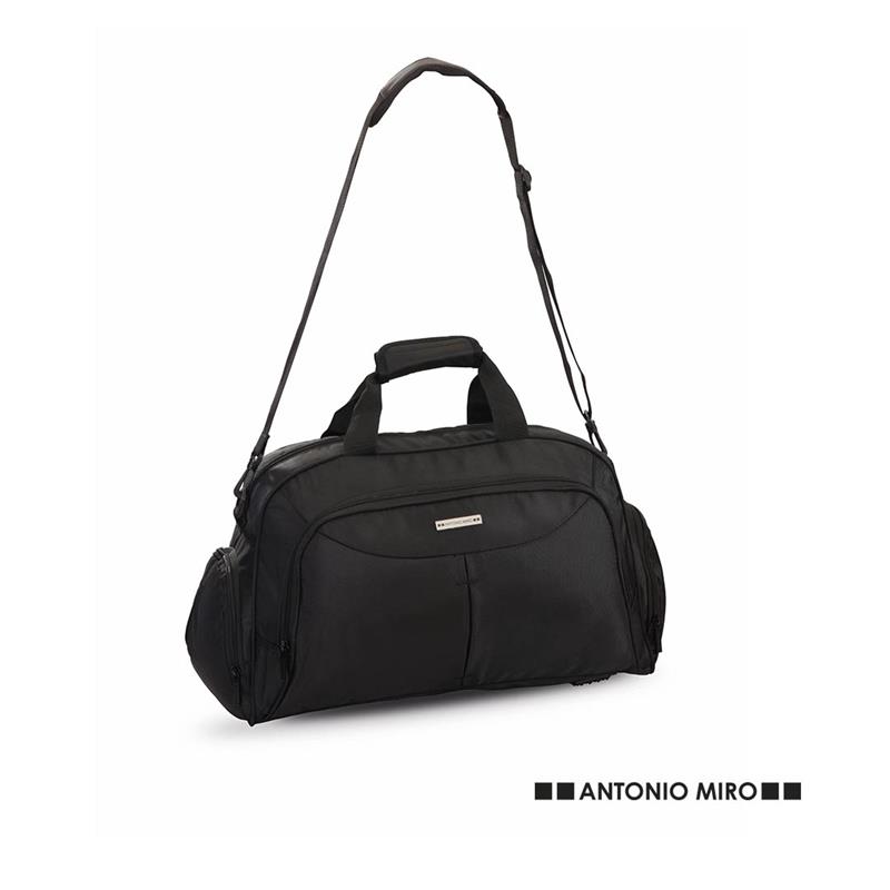 Bolso de Antonio Miro en poliéster 1680D de sobrio acabado en color negro. Con cierre de cremallera de doble tirador y bolsillos en laterales. Chapa en frontal con logotipo de la marca.