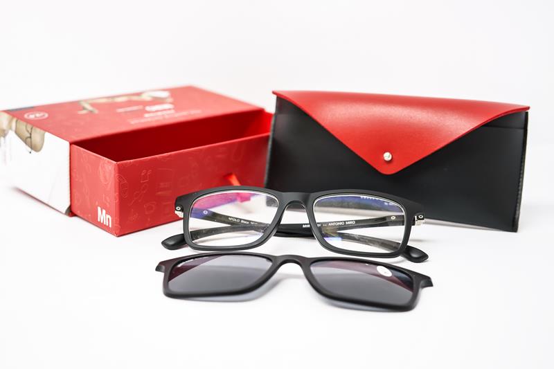 Gafas de Presbicia ANTONIO MIRO con clips solares. Montura premium con clips solares polarizados. Una gafa que ofrece más resistencia, más durabilidad y más flexibilidad. Es antireflejante y antiralladuras y repele el agua y el polvo. Viene con 2 compartimentos en el estuche, uno para los clips solares y otro para las gafas. Disponible en 2 colores negro y combinado con azulón.