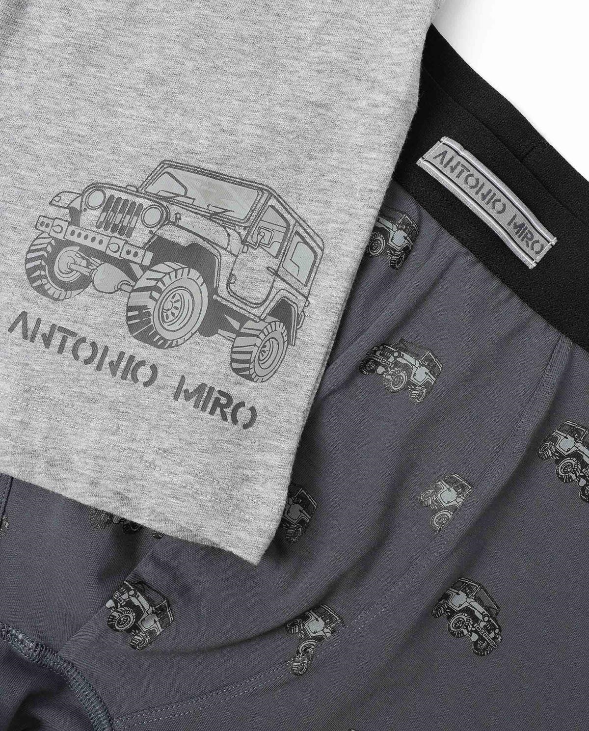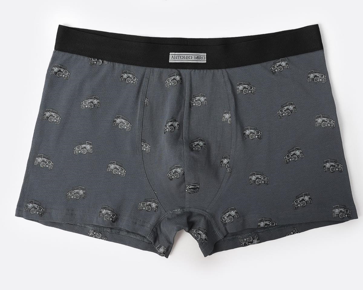 Calzoncillo/Boxer para hombre, de algodón elástico, en dos combinaciones de diseño y color: gris jaspe y negro. Cuenta con una goma elástica personalizada de la marca Antonio Miro para un ajuste perfecto. Tejido suave al tacto que proporciona una sensación de confort durante todo el día. Incluye refuerzo en la parte delantera para mayor durabilidad y soporte.