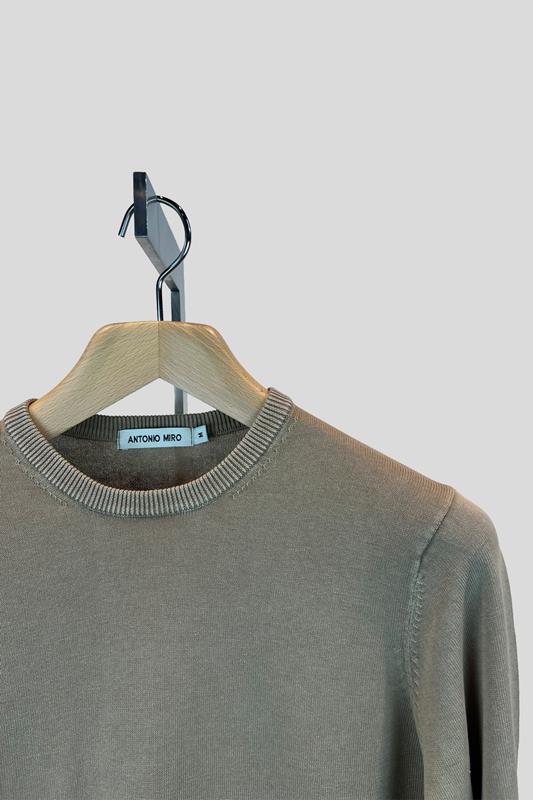 Jersey "stone washed" en punto de algodón, de corte entallado, cuello redondo y manga larga. Disponible en beige y rosa.