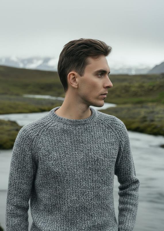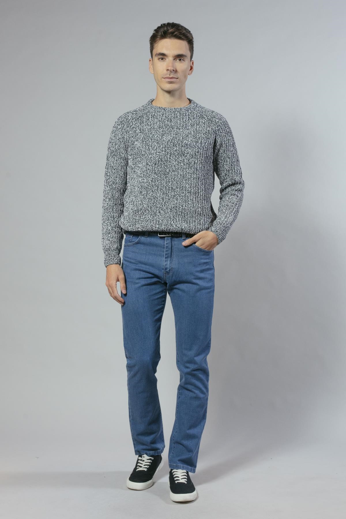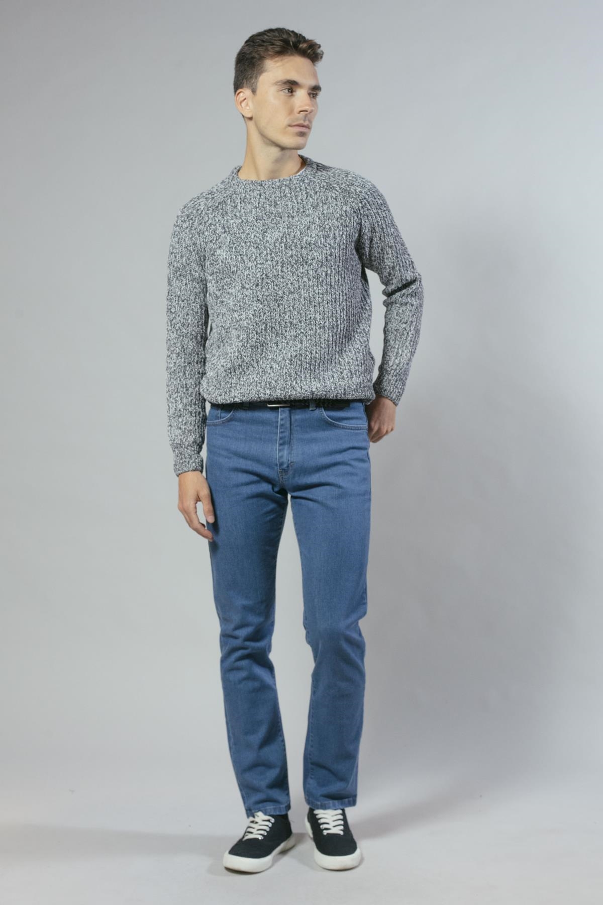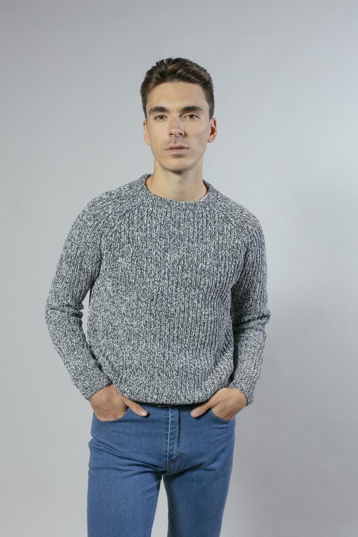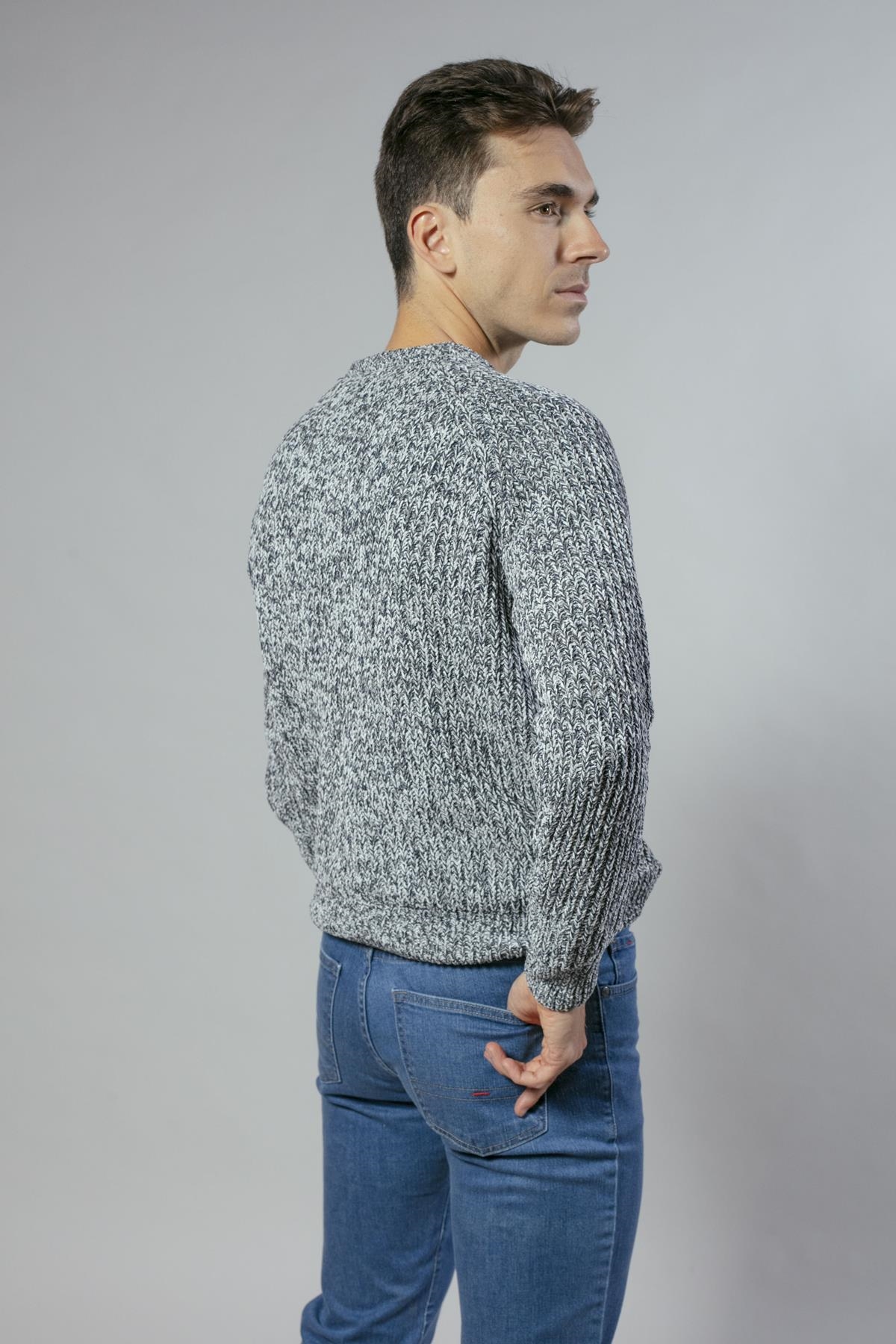 Jersey jaspeado de corte ligeramente regular, cuello redondo y manga larga en punto grueso.