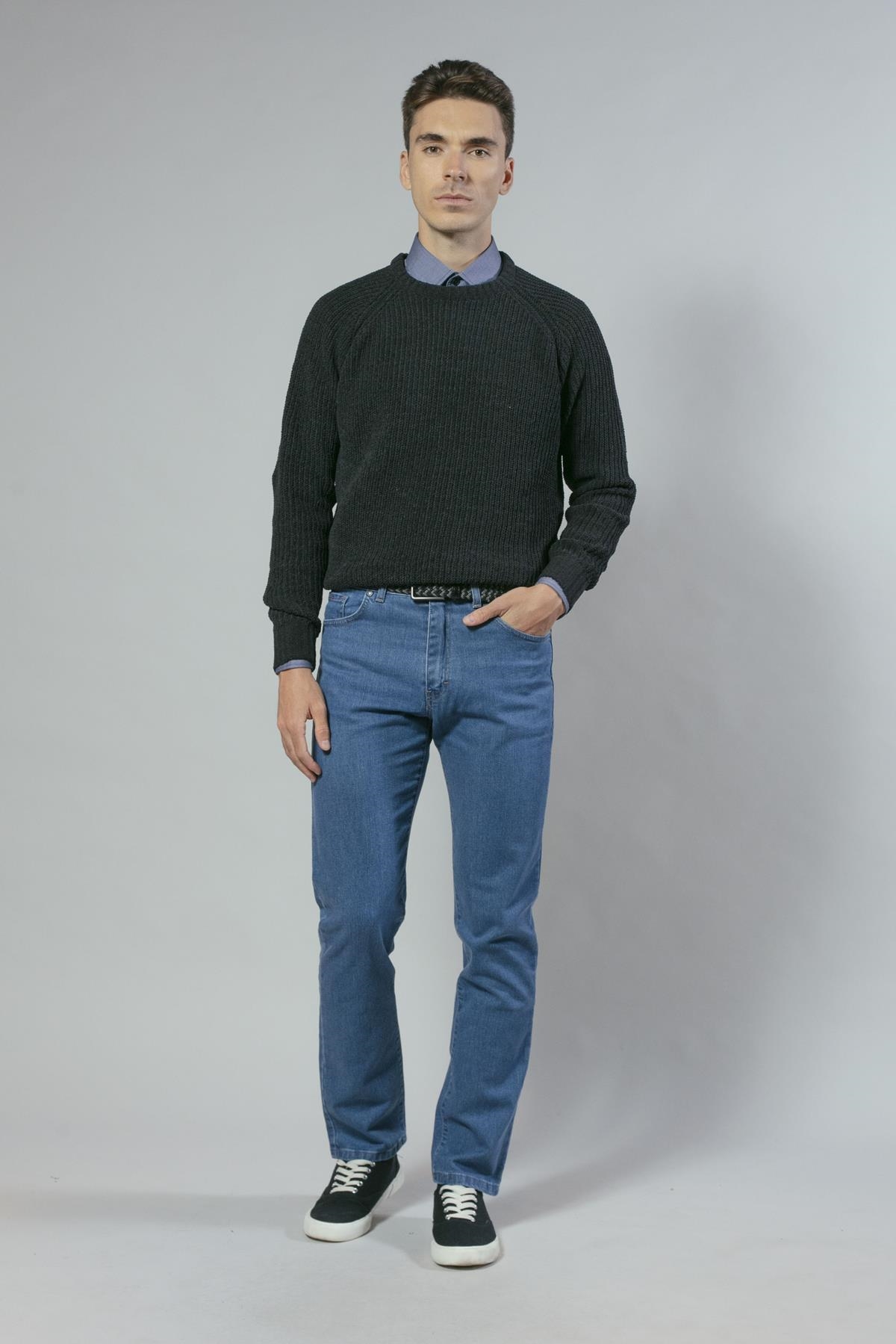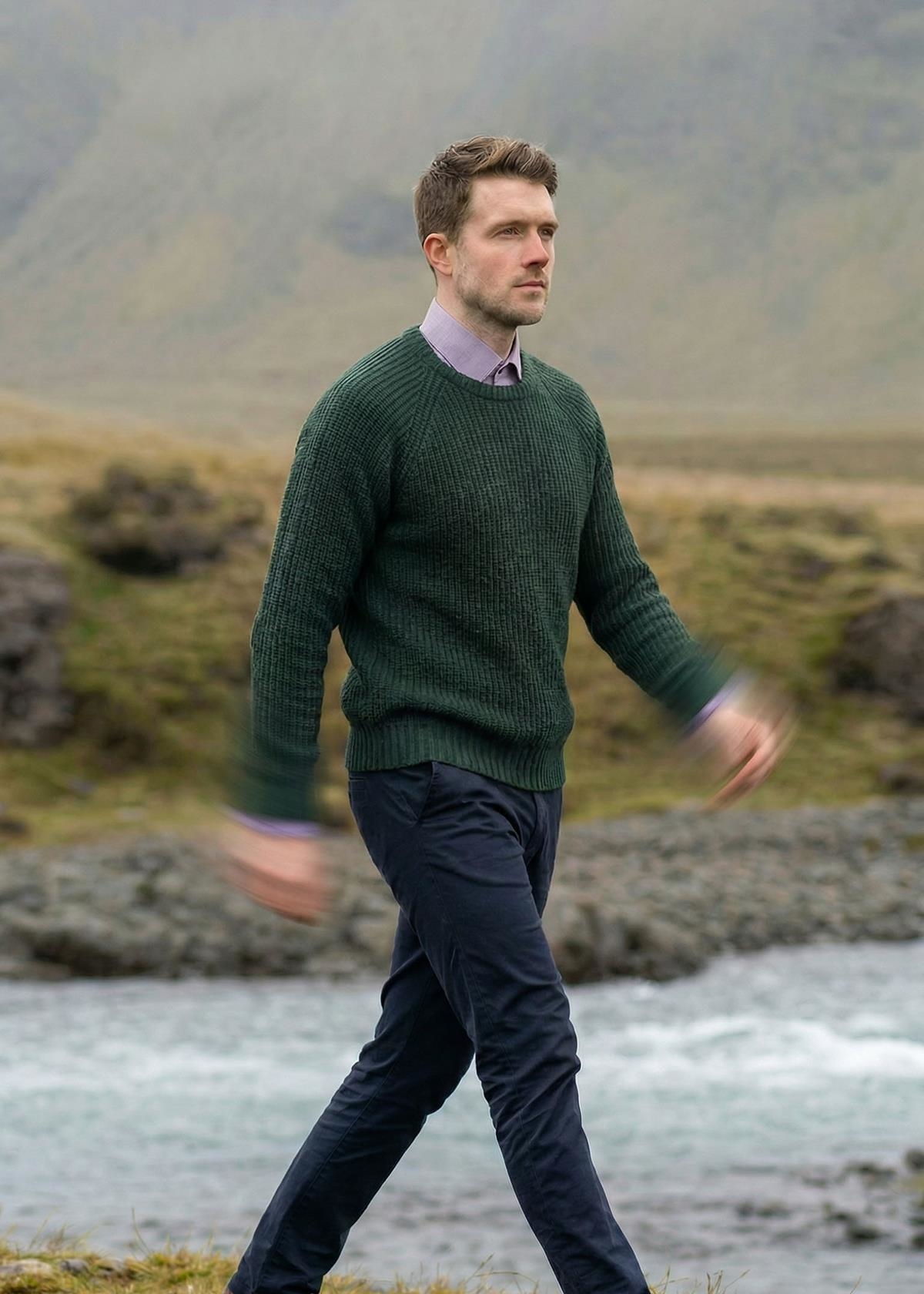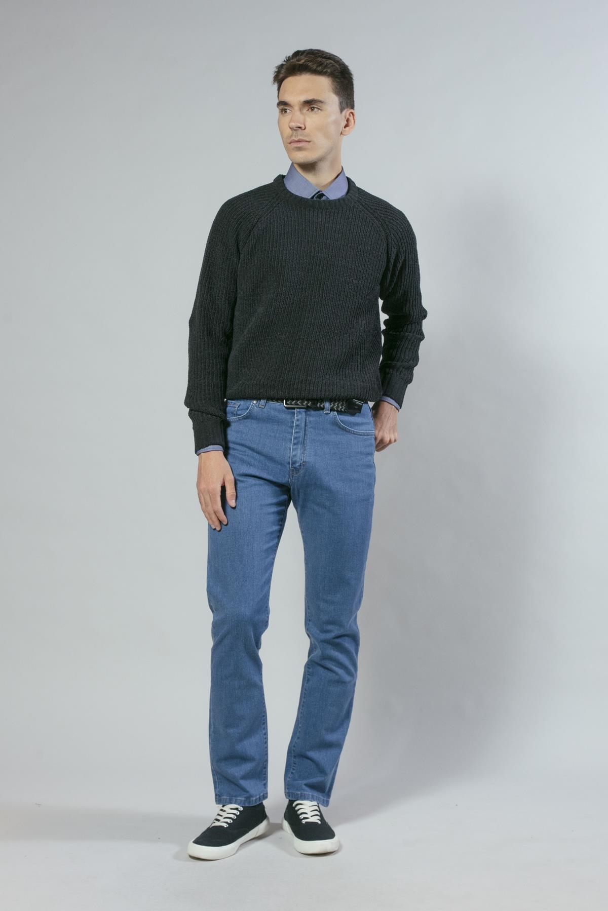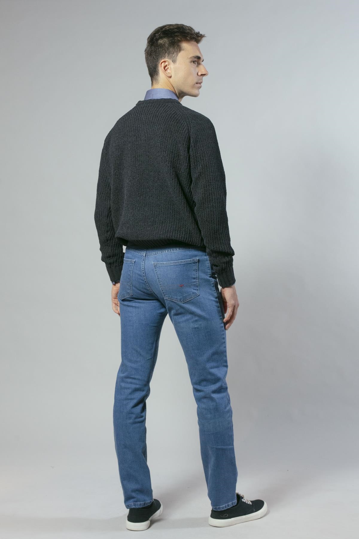 Jersey en punto grueso, de corte ligeramente regular, cuello redondo y manga larga. Disponible en cuatro colores: negro, azul marino, verde y granate.