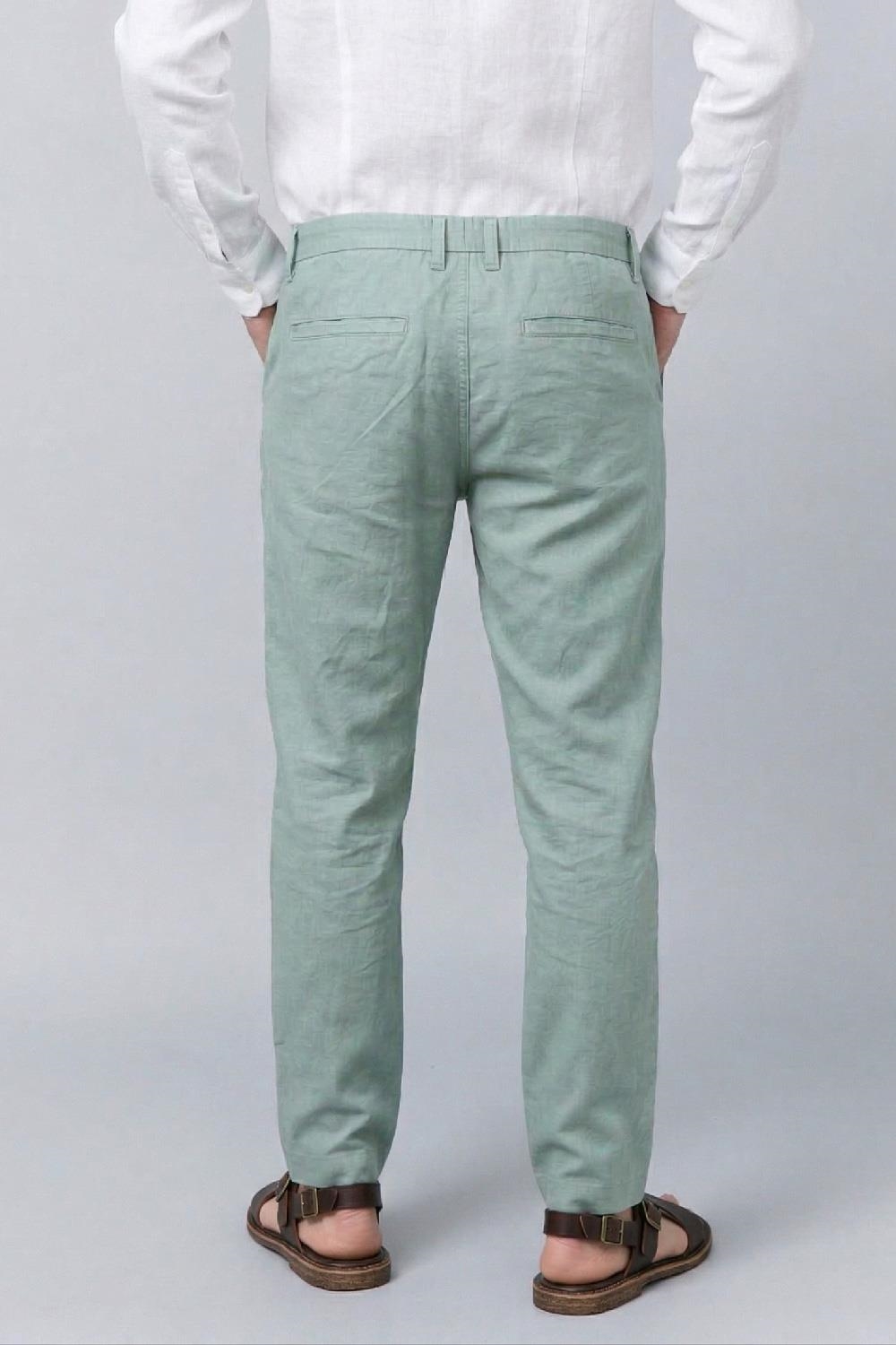 • PANTALÓN LINO GOMAS VERDE AGUA
