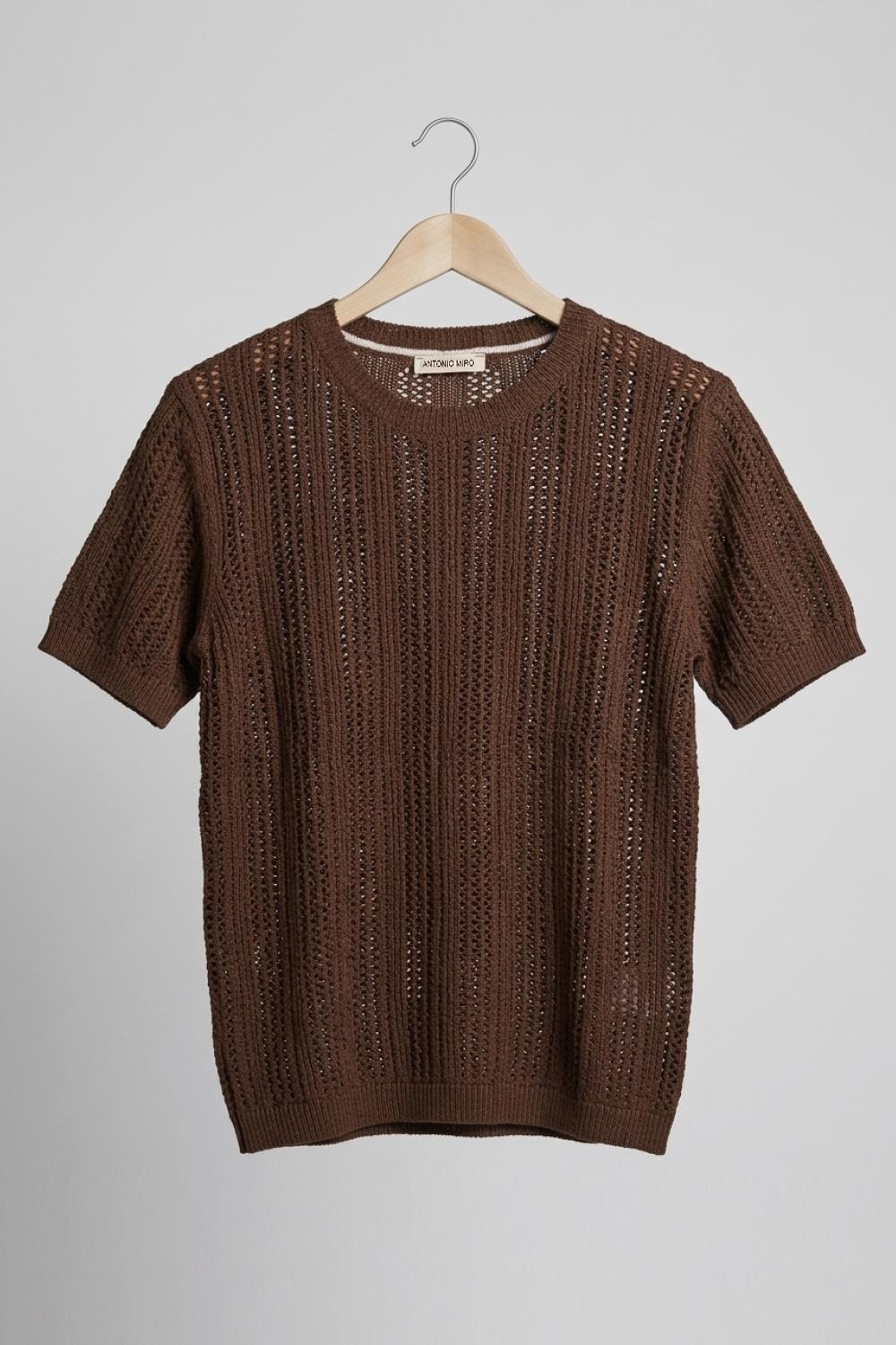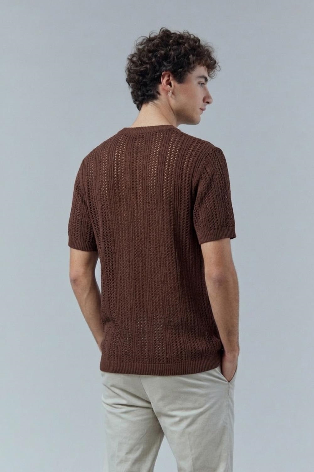 • JERSEY CUELLO REDONDO MARRÓN MANGA CORTA PERFORADO