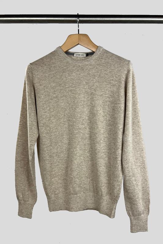 Jersey entallado en lana, de manga larga y cuello redondo. Disponible en beige, azul noche y marrón.