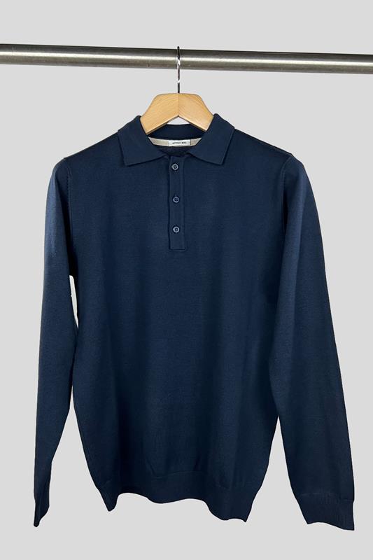 Polo de corte entallado, en punto de viscosa, de manga larga y con botones en el cierre del cuello. Disponible en negro, azul marino y antracita.
