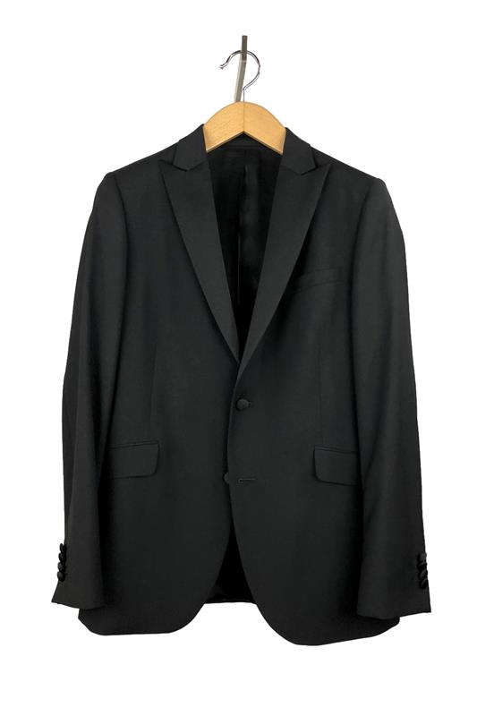 Traje de ceremonia negro satinado (Drop 8: slim fit). Americana con cierre de dos botones acolchados en satén y detalle de botonadura satinada en la manga. Dos bolsillos delanteros con tapeta. Dos aberturas traseras. Solapa ancha de corte moderno. Pantalones con pinza y doble botonadura para el cierre con cremallera. Bolsillos en la parte trasera con botón. Made in Portugal. 100% lana virgen. Instrucciones de lavado: no lavar con agua, no usar lejía, planchar a máx. 150 ºC, limpieza en seco, no utilizar secadora.